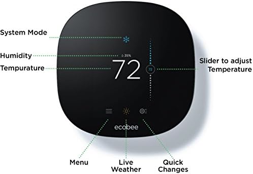 Peace of mind – your ecobee monitors your heating and cooling systems and alerts you If it senses that something isn’t working properly. Refer userguide before use
