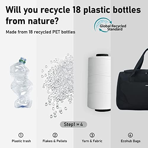 【RECYCLED PET HIGH QUALITY FABRIC】: ECOHUB hand luggage bag is 100% eco-friendly because it is made from 18 PLASTIC PET bottles! Its recycled fabric is water-resistant and lightweight and certified by GRS. Also built with heavy duty SBS brand zippers, reinforced ripstop stitching, ECOHUB travel bag guarantees the top quality.