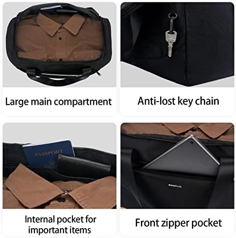 【ROOMY CAPACITY AND EASY TO CARRY】: ECOHUB travel bag has large openings for easy access to what you need. One main pocket, which can meet your essential items for business trips and daily travels. An inside pocket can store your important items. The keychain can prevent your keys from being lost . An outside pocket provides quick access to your iPad, umbrella or water bottle, ID and passport. This flight bag has a special trolley sleeve that allows the handbag to slide over the luggage handle.