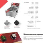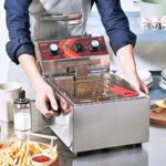 PROFESSIONAL DEEP FRYER -This stainless steel deep fryer is durable for both commercial and home home. Perfect for restaurants, supermarkets, fast food stands, snack bars, foodtruck and parties. Suitable for fish, buffalo wings, chicken, dumplings, egg rolls, shrimp rolls, mozzarella sticks, jalapeno poppers, french fry