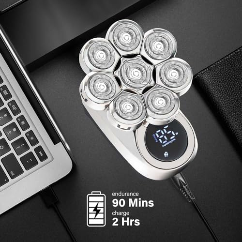 【Type-C Rechargeable & Led Display】USB quick charge for 2 hours, enjoy 90 minutes of shaving. Smart LED display can display usage time and remaining time, so you can decide when to charge the shaver after shaving. It can be charged by laptops, cars, power banks, etc.
