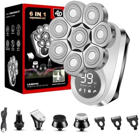 【6-In-1 Grooming Kit】This electric shaver set comes with 5 different essential grooming accessories.The kit includes: A rotary shaving head. A precision clipper/trimmer with 3mm, 5mm & 7mm safety guards. Nose & ear hair trimmer. Facial cleansing brush. A deep cleansing massager.All-in-one sets meet for mens needs