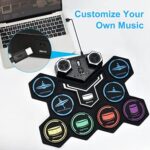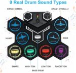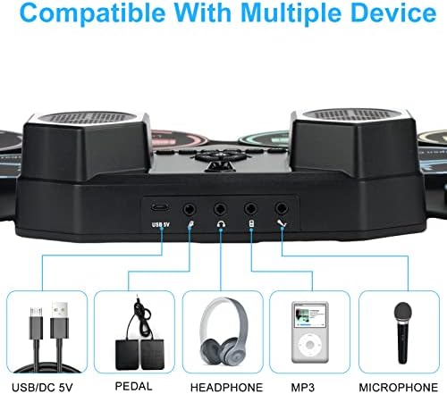 Record And HEADPHONE JACK:Supports 3.5mm headphone output, allows you to play anywhere you feel inspired to drum without barriers or disturbing. 7 drum tones, 10 demo songs and 9 drum rhythms are optional for different music styles. Recording button allow you record your beats, 180-second ultra -long performance recording function Let you savor your creation!