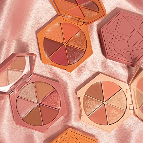 Palette Includes Terra: Milk Chocolate Matte Phoenix: Warm Clay Matte Sunset: Soft Peach Matte Radiant: Bleached Copper Shimmer Magic Hour: Duochrome Nectar Shimmer Heavenly: White Gold Shimmer professional and beginner friendly, blendable, eyeshadow, pigment, shimmer, satin, matte, velvety-rich textures, mesmerizing finishes, eye safe, beauty, makeup, 6 pan eyeshadow, 6 shades per palette, color payoff