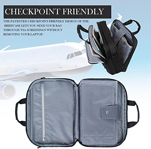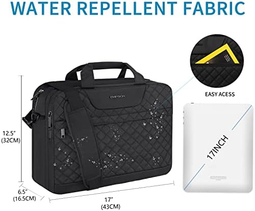 MULTIPLE COMPARTMENTS: EMPSIGN laptop briefcase has a large capacity with three compartments for almost all your daily needs, plus an extended zipper that provides more space to handle more carrying needs. The padded laptop compartment provides perfect protection for your 17″ laptop from the bumps and bruises of travel. A large main compartment can hold books, files, mouse, chargers, and other office supplies. A front compartment provides easy access to badges, keys, cell phones and more.