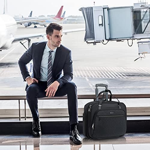 EMPSIGN Rolling Laptop Bag, 15.6 Inch Roller Briefcase with Wheel, Rolling Underaeat Computer Bag with Water-Proof RFID Pockets for Travel Business Work-Quilted Black