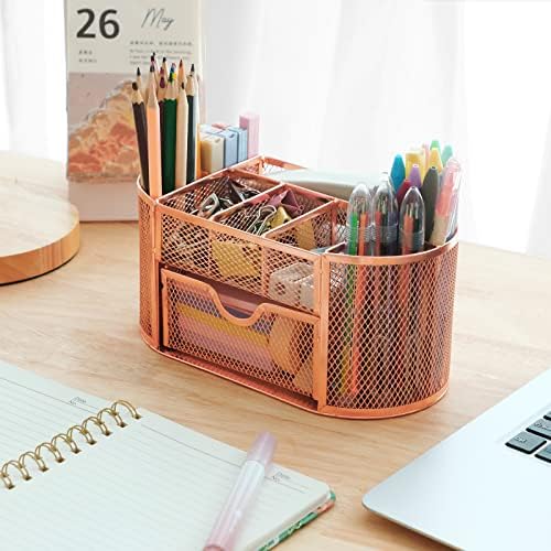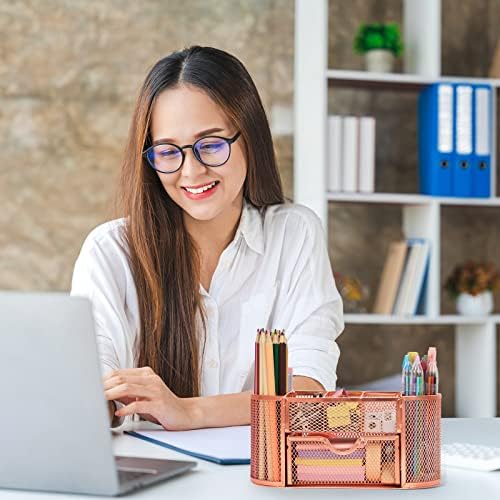 High-quality Material: This rose gold desk organizer is made of powder-coated metal, which is durable and will not be bent easily. There are non-skid pads on the bottom of the pencil holder, which help to avoid slipping and scratching.
