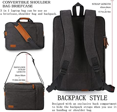 【Comfortable to Carry】Humanization design, This hand-free canvas laptop bag could always keep you comfortable. Removable shoulder strap, Hide-away handle and backpack straps are all padded. With widened luggage straps. Easy to carry this water resistant shoulder bag when on business or travel.