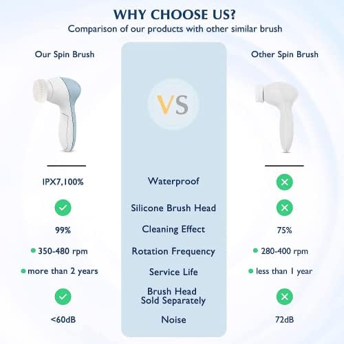 100% WATERPROOF AND SAFE DURING SHOWER: This facial exfoliating brush is IPX7 waterproof, making it safe to use in the shower. For the facial cleansing brush to last, we sincerely recommend that you keep the battery compartment dry and do not submerge the entire facial brush in water (Does not include 2 AA batteries)