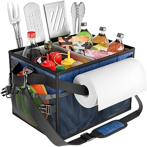 Easy Carry & Versatile- Features with a detachable padded shoulder strap and easy carry handle for your convenience, make carrying stuff in and out to outdoor activities much easier, saves your time repeated between grill and your kitchen, a great table tool caddy for grilling, picnic, patio, camping, barbecue, outdoor dinner, griddle, rv, also an ideal gift for grilling lover and camper