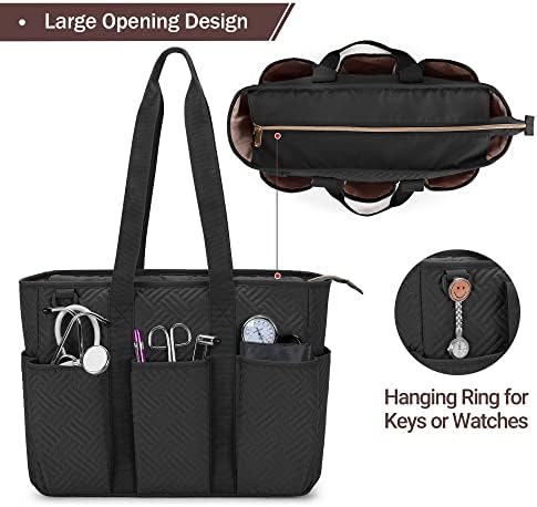 8 OUTER POCKETS: Numerous open pockets around the nurse tote bag for easy access to your stethoscopes, masks, cotton swabs, water bottle or other medical supplies. Attached with hanging ring for keys or watches.