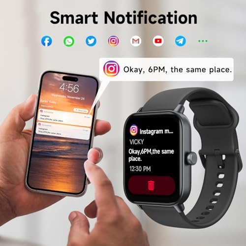 【100+ Sports Watch】Supporting 100+ Sports modes,this fitness watch for iphone could record your activity including calories,steps,distance,and workout time,generate reports after your exercising.