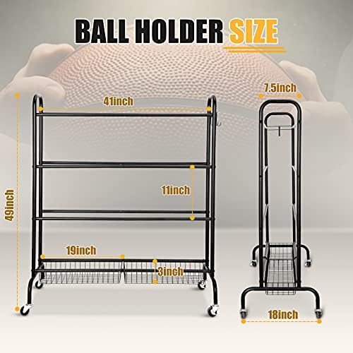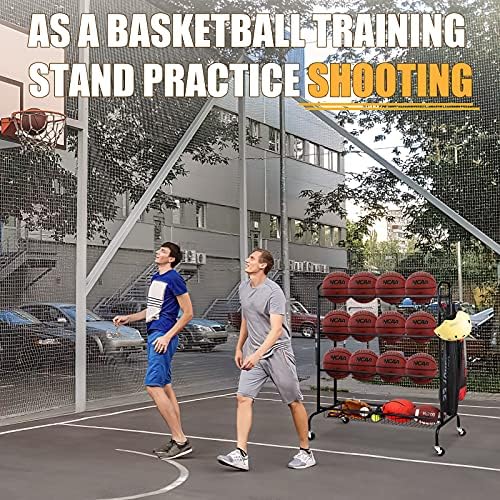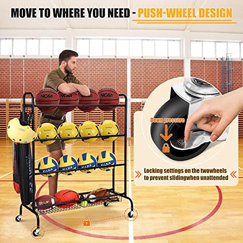 🛒【Ball Cart with Wheels】 : Ball cart use 4 heavy-duty wheels, easy to push whether it is indoors or outdoors. Two wheels with lock switches, prevent the cart from sliding when locked.