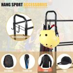 ✅【Three Hooks & Two Basket】 : Three hooks on the side of rack, you can hang of other sports equipment. Two baskets can be hung on any floor to store rugby or small balls.Effectively increase the storage capacity in the garage.