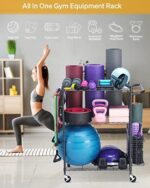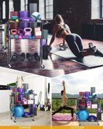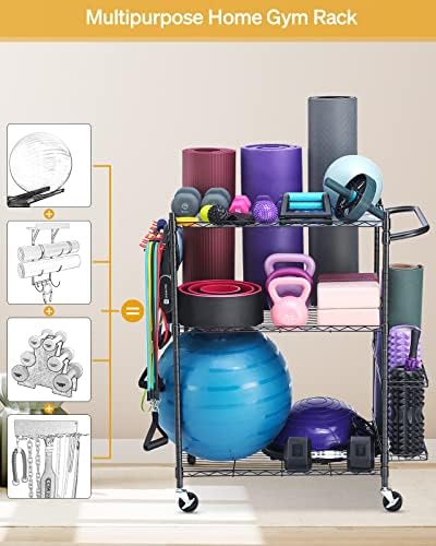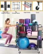 FHXZH Yoga Mat Storage Rack, Home Gym Workout Equipment Storage Rack, Cart for Organizing Workout Room, Organizer Yoga Equipment Dumbbell Kettlebells Home Gym Storage Rack with Hooks and Wheels