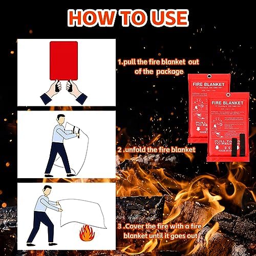 Easy to Use: pull down tabs on the fire proof blanket, spread the blanket to cover the fire, let the emergency fire blanket sit there for a few seconds to suffocate the fire, turn off the stove or other heat source, and wait for the blanket to cool before throwing it away