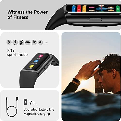 TAKE YOUR FITNESS FURTHER— FITVII activity tracker all day measures the calories burned, steps, and distance. Use 20 sport modes to exercise scientifically & levels up your workouts by recording heart rate, calories, and more.