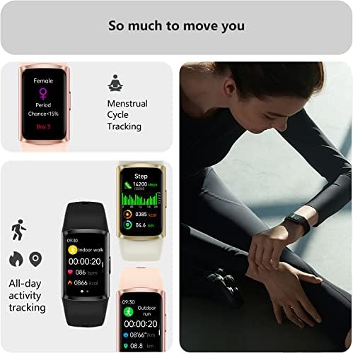 MORE PRACTICAL FUNCTIONS — Phone calls, texts, and all App message notifications are readily available. Real-time Weather, Alarm, Timer Stopwatch, Cycle Tracking, Camera, Sedentary Reminder, Music Control, Wrist Sensor Switch, Find Phone, DIY Watch Faces, and more to make your fitness journey even more convenient.