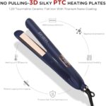 【3D Floating Titanium Plates & PTC Heating】3D floating NANO titanium Plates can reduce tugging and snagging hair, making the hair slide smoothly in the splint; In order to protect hair from overmuch heat exposure, flat iron adopts titanium plate with PTC fast heating technology, which can effectively prevent Thermal Damage hair and make the styling effect better.