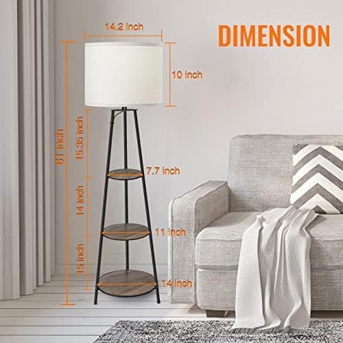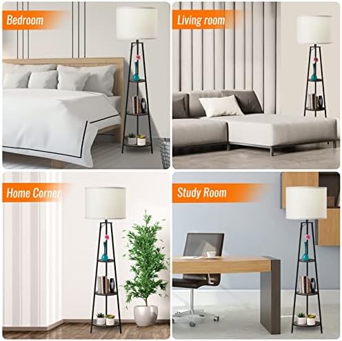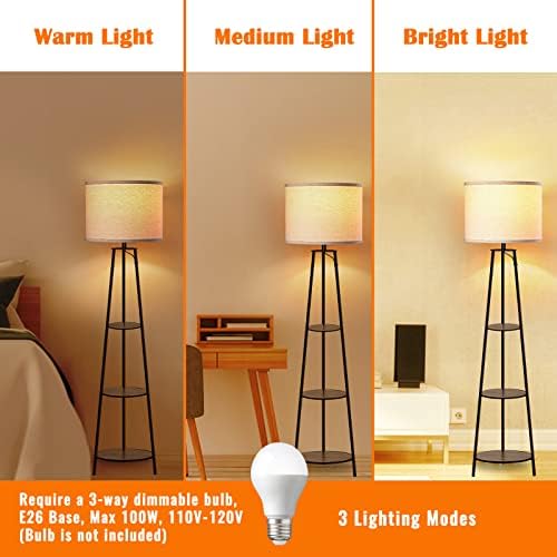 3-level Dimmable Brightness: The E26 socket of this tall lamp has a high heat dissipation capacity to assure longer lifespan. Besides, this floor lamp with shelves has three light brightness modes: low-medium-high, which is convenient for any scene, like reading, working or daily use. (3-level dimmable Bulb is not included, Max 100W)