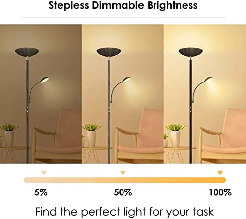 Practical Design for Multiple Use; This 3000K LED floor lamp offers versatile brightness, easy to move around or stash in a corner, saving your space; Plus, the eye-caring torchiere floor lamp can illuminate all your spaces, matching perfectly as a floor lamp for living room, bedroom, office; The sturdy gooseneck reading lamp can boost up all your cozy moment with families, pets and the precious yourself; One functional Boostarea modern floor lamp suits for all decor styles and personal hobbies