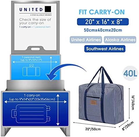 Home Luggage & Travel Accessories For United Airlines Foldable Carry on Bag 35 L, (8x16x20 inch) Waterproof Travel Duffel Bag, Packable luggage Duffle for Women and Men…