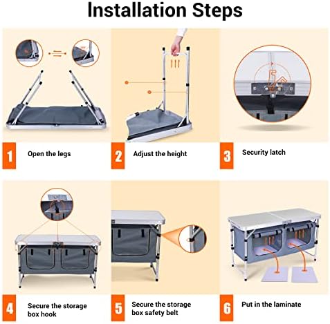 Home Luggage & Travel Accessories Camping Furniture Funcode Folding Camping Table with Storage,Portable,Adjustable,Lightweight for Indoor and Outdoor Picnic, Beach, Hiking, Travel, Fishing, BBQ(L).