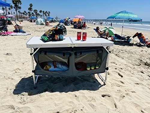 Funcode Folding Camping Table with Storage,Portable,Adjustable,Lightweight for Indoor and Outdoor Picnic, Beach, Hiking, Travel, Fishing, BBQ(L).