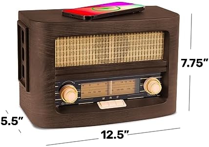Radio with a built-in fast wireless charging pad. This convenient feature allows you to effortlessly charge your wireless charging enabled devices by simply placing them on the radio’s top surface. Say goodbye to tangled cords and enjoy the convenience of wire-free charging, adding a modern touch to the nostalgic appeal of this vintage-inspired radio.