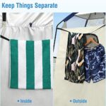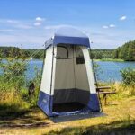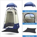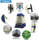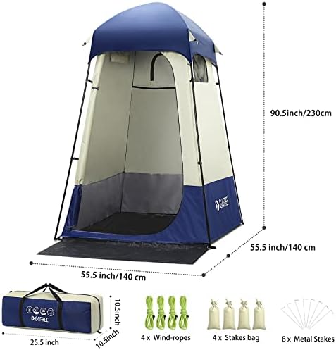 【Best Privacy Room】 A large zippered entry door provides easy access and 2 double-layered (cloth + mesh) windows , which can be closed or opened. Also, the mesh tent top with removable waterproof top rain fly. Both privacy and ventilation are very good. There are also 2 storage bags inside for storing toiletries. 1 inside strap for hanging your changing clothes and 1 outside strap to keep clothes and towel dry