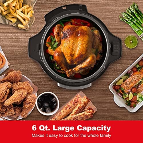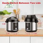 [2 Removable Lids]This Electric Pressure Cooker and Air Fryer is equipped with 2 removable lids – an air fry lid and a pressure cook lid, which make it easy to switch between an air fryer, pressure cooker, slow cooker or steamer.