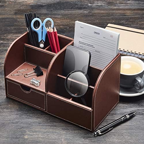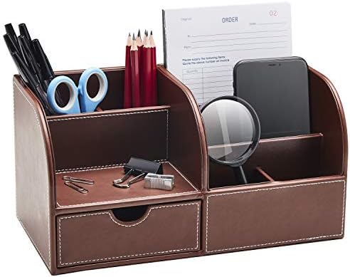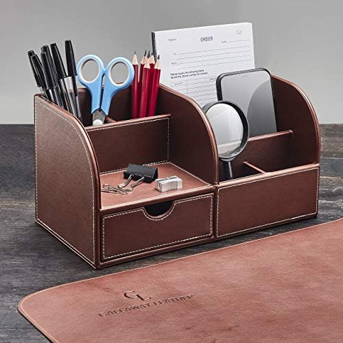 The ultimate leather desk organizer – our stationary organizer box comes with 7 separate compartments to organize your office supplies and keep your desk neat and organized while you work. Perfect leather desk accessories for men and small desk organizer for small spaces.