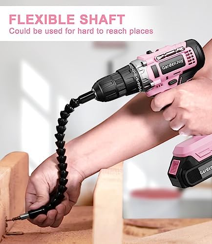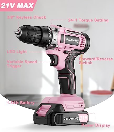 GardenJoy Cordless Power Drill Set - 21V Electric Drill Driver Kit with Battery and Fast Charger, 65pcs Acessories, 2 Variable Speed Control, 3/8-Inch Keyless Chuck and 24+1 Torque Setting