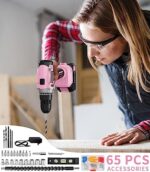 Home Tools & Home improvement Home Improvement GardenJoy Cordless Power Drill Set – 21V Electric Drill Driver Kit with Battery and Fast Charger, 65pcs Acessories, 2 Variable Speed Control, 3/8-Inch Keyless Chuck and 24+1 Torque Setting