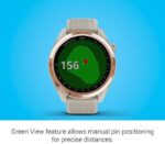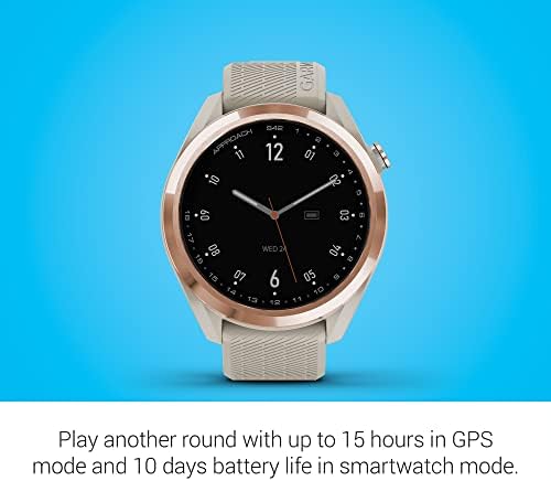 We’ve got your game on and off the course with Approach® S42, a GPS golf smartwatch that puts information from more than 42,000 CourseView maps worldwide on your wrist. The Green View feature allows manual pin positioning so you can quickly reference distances to the front, middle and back of the green as well as hazards and doglegs. The AutoShot round analyzer measures and auto-records detected shot distances (lie and ball contact may affect shot tracking); pair with optional Approach® CT10 club tracking sensors (sold separately) for more automatic game tracking capabilities. Pair with the Garmin Golf™ app (when downloaded on a compatible smartphone) for strokes gained analysis, to participate in leaderboards and tournaments and gain more insights into your game. Wear the watch all day, and get smart notifications (when paired with a compatible smartphone) and estimated activity-tracking features.