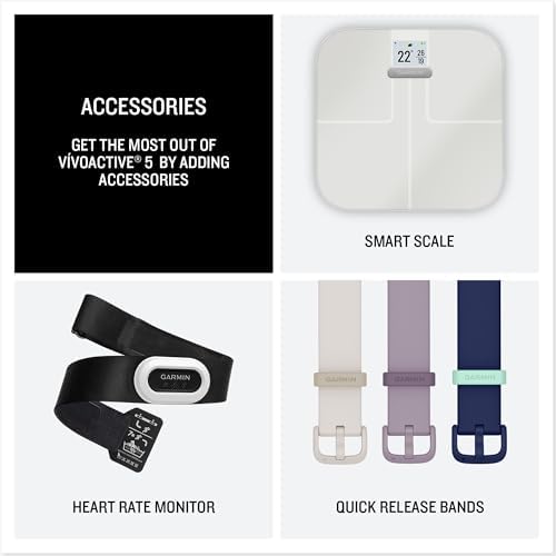 Know the real you with the vívoactive® 5 smartwatch, the ultimate on-wrist coach designed to support your goals — whatever they may be. Featuring a bright, colorful AMOLED display and up to 11 days of battery life, this GPS smartwatch is purpose-built with essential health and fitness features to help you better understand your body. Body Battery™ energy monitoring helps you keep your energy levels in check with personalized insights based on sleep, naps, stress, workouts and more. Improve the quality of your sleep with personalized sleep coaching and nap detection plus even more details such as HRV status (data presented is intended to be a close estimation of metrics tracked). During the day, switch up your activities with more than 30 built-in sports apps — including apps for active wheelchair users — plus advanced training features to keep you going strong. When paired to your smartphone, vívoactive 5 makes it easy to receive texts, emails and other smart notifications right from your wrist. Plus, enjoy connectivity features such as music storage, Garmin Pay™ contactless payments and more.