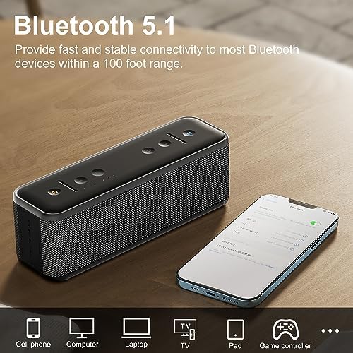【Bluetooth 5.1 Signal】The Wireless Bluetooth speaker can provide fast and stable connections within a range of 33 feet. Its signal won’t be disturbed even in difficult conditions. Its Bluetooth 5.1 chip can easily read music playlists and connect to the vast majority of Bluetooth devices, such as phones, computers, TVS, tablets, VR, and game controllers.