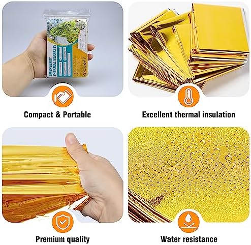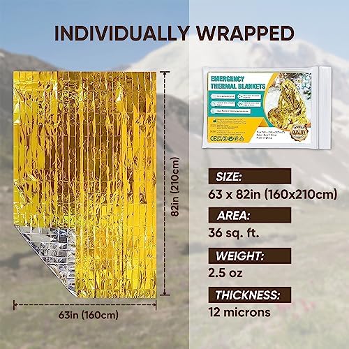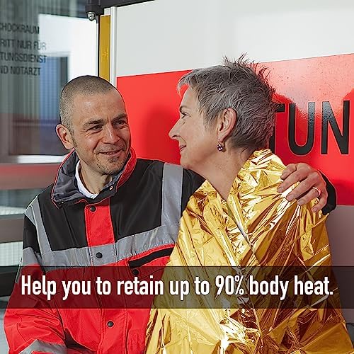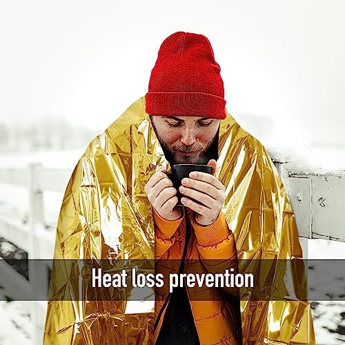 LIGHTWEIGHT AND DURABLE – Made from military-grade 12-micron aluminized polyethylene mylar, originally developed for NASA. Blankets are reusable, waterproof, windproof, moisture-proof.