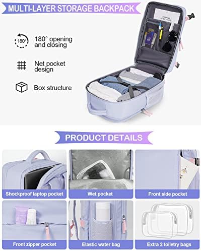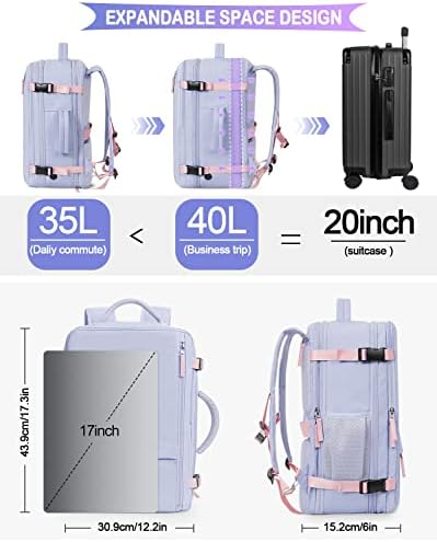 Home Luggage & Travel Accessories Getravel Travel Backpack for Women, Airline Approved Carry On Luggage As Personal Items, 17.3 inch Laptop Backpack, Waterproof Weekender Bag, Hiking Backpack(Purple)