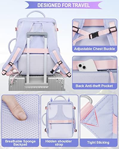 Getravel Travel Backpack for Women, Airline Approved Carry On Luggage As Personal Items, 17.3 inch Laptop Backpack, Waterproof Weekender Bag, Hiking Backpack(Purple)