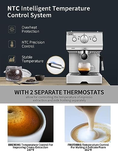 【DOUBLE TEMPERATURE CONTROL】: With an accurate dual temperature control system, the temperature of water and the taste of milk foam, foam, coffee and milk can be adjusted to achieve the ideal state.