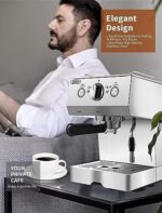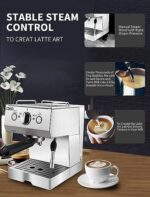 Latte Machine, Latte Maker, Brushed Stainless Steel Coffee Machine, Cappuccino Machine, Cappuccino Maker, Expresso Maker for Home or Office, Best Coffee Gift for Dad, Coffee Gift for Mom, Coffee Gift for Wife, Gift for Women, Gift for Men, Espresso Machine With Milk Frother Steam Wand