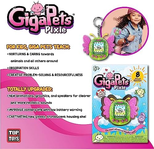 💐COMES IN 3 GREAT DESIGNS – The Pixie generation of GigaPets comes in 3 color variations. Each has super flexible wings and comes with a keychain, so that you can take your pixie anywhere you go. Recommended for ages 5 and up.