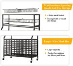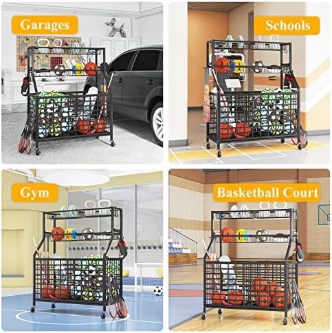 Multiple Usage Scenarios: This sports equipment storage rack has 4 heavy-duty smooth rollers, which are very easy to move to a specific location for use. Ideal for garages, gyms, schools, basketball courts and other scenarios