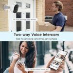 [Two-Way Talk and Intelligent Alarm] This Surveillance camera has a built-in speaker and microphone, allowing you to make real-time intercom with mobile phones. You could check the live view on your phone. Flashing white lights and sirens will drive away unwanted visitors. The PIR Motion Detection of bullet camera is also triggered to record.