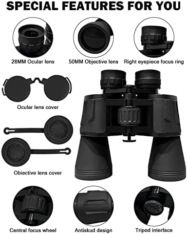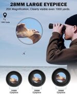 🔭【Professional 20×50 Binoculars】: GOANDO Binoculars with 20X Magnification, 28MM Large Eyepiece Lens, and 50MM Objective Lens can help adults and children broaden their horizons, clearly visible even 1000 yards as if you are there.