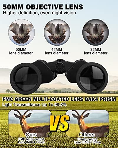 🔭【Higher Definition Even Low Night Vision】: High power compact binoculars equipped with FMC Green Multi-coated Lens and BAK4 Prism, Light Transmittance up to 99.8%. Objects can be seen clearly even in low light, providing you with high-quality images.