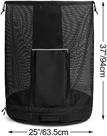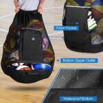 WELL-DESIGNED: The reinforced drawstring closure system is convenient for ball storage and also keeps contents secure. The bottom zipper outlet allows to get all balls out quickly. Large zipper pocket with D-shape ring is great for storage accessories, such as jersey, towel, whistle, timer and more.