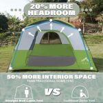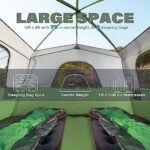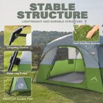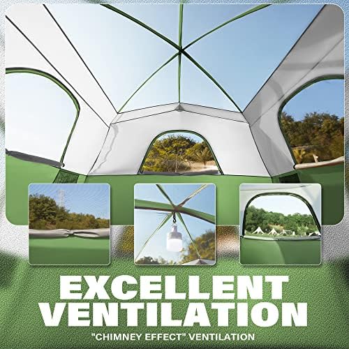 【Considerate Designs】: The Cabin Tent has a double-layer design that includes 1 large entrance door,2 roof vents and 3 windows that allow for great ventilation. With mesh bag and a Electrical Access Port in the tent, easy to collect sundries to keep the inner space tidy and your device in the tent to an outside power source.