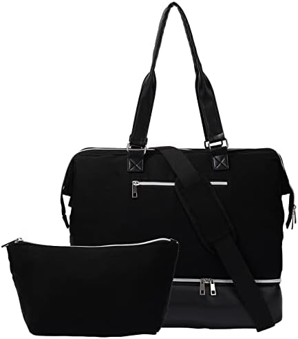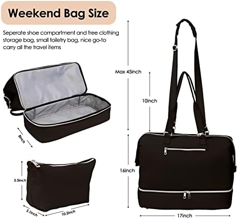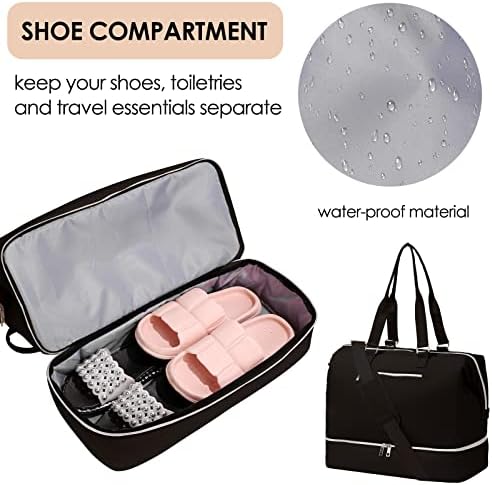 WEEKENDER BAG WITH SHOE COMPARTMENT: Bottom compartment design, separate storage for shoes, toiletries and travel essentials, with 2 dustproof shoe covers.